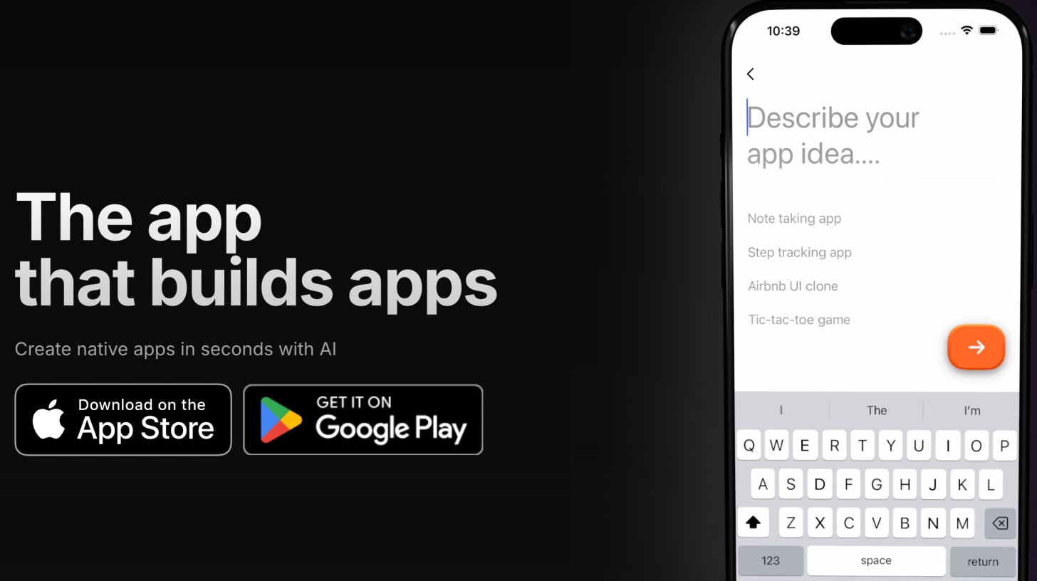 Vibecode - aplikacja mobilna, w której dzięki AI możemy tworzyć swoje aplikacje mobilne samymi promptami. W ramach darmowego planu mamy $1 do wykorzystania, co wystarczy na stworzenie prostej apki.